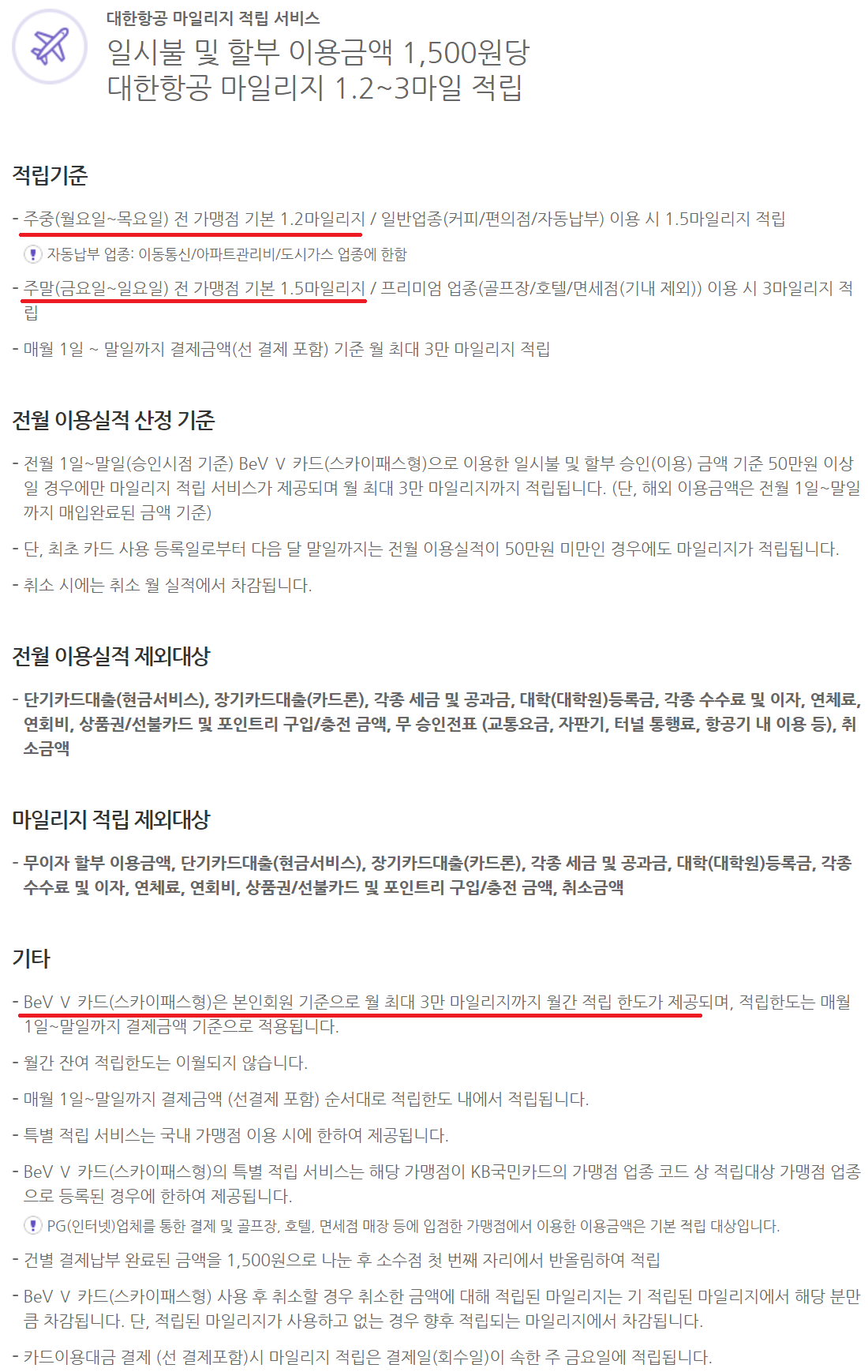 대한항공 카드가 초반 프로모션 혜택을 빼면 생각보다 메리트가 없다고 판단되어 프로모션 이후에 사용할 카드를 고민하던 중, 마일리지 적립용으로 약 2년 이상 사용 중인 베브 V 카드의 혜택을 정리해보기로 했다. 사실 베브 V 카드를 처음 신청할 때, 공항 라운지 이용 횟수 때문에 신청을 했는데 대한항공 마일리지 적립 혜택도 있어서 기존에 사용 중이던 마일리지 적립용 카드를 필요 없게 만들어버린 카드다.