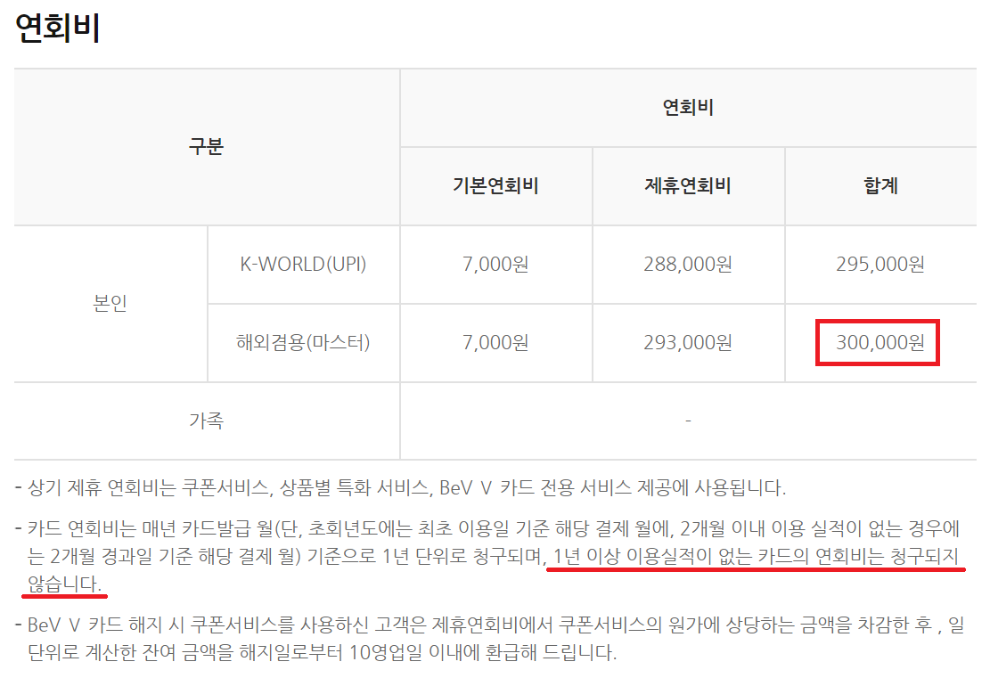 또한, 1년간 이용실적이 없으면 연회비를 청구하지 않는다고 한다.
