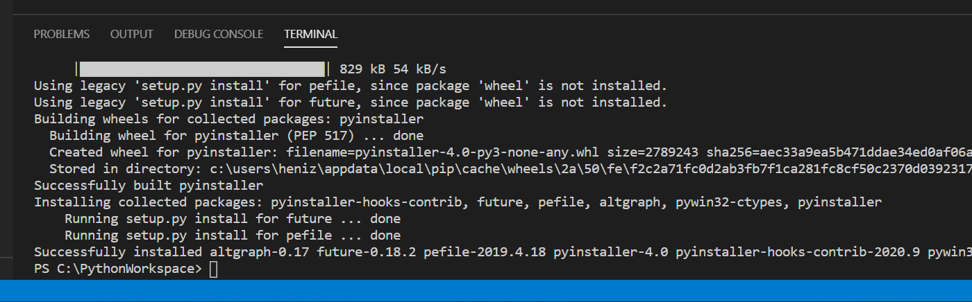 Pyinstaller 설치완료