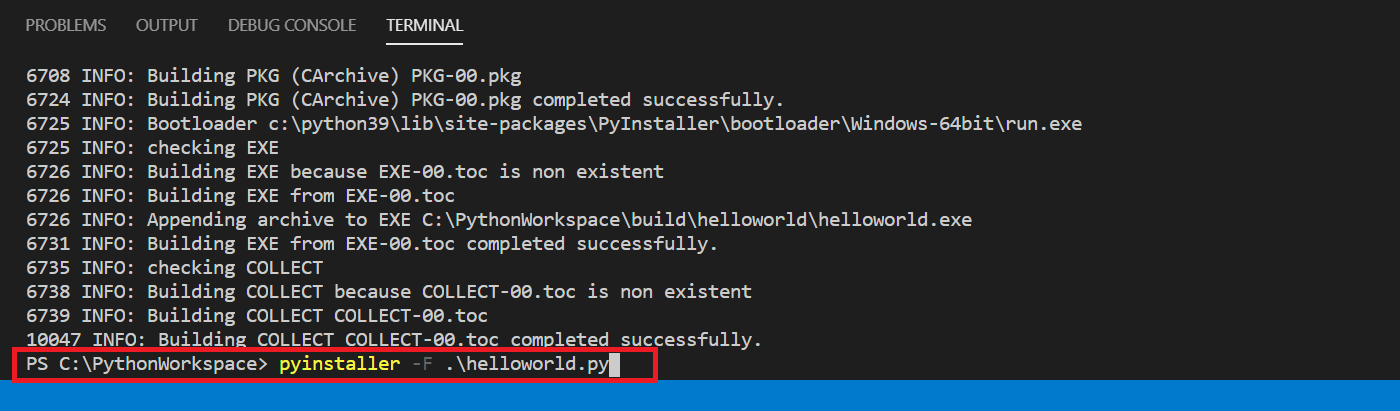 pyinstaller .\helloworld.py