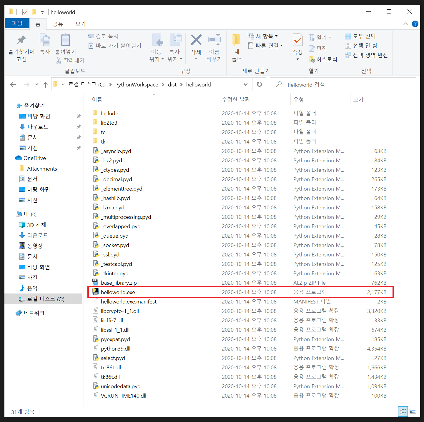 \dist\helloworld 폴더내 파일