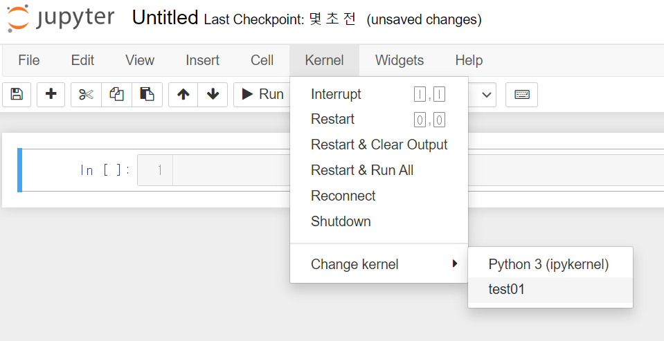 -> 가상환경 'test01'을 주피터 노트북 커널에 연결