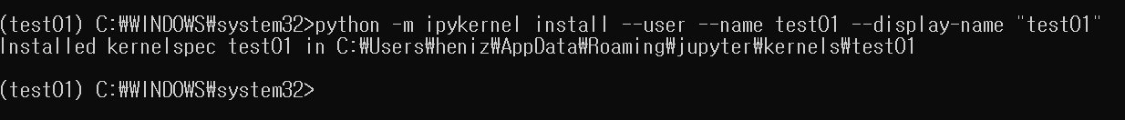 ex) python -m ipykernel install --user --name test01 --display-name "test01"