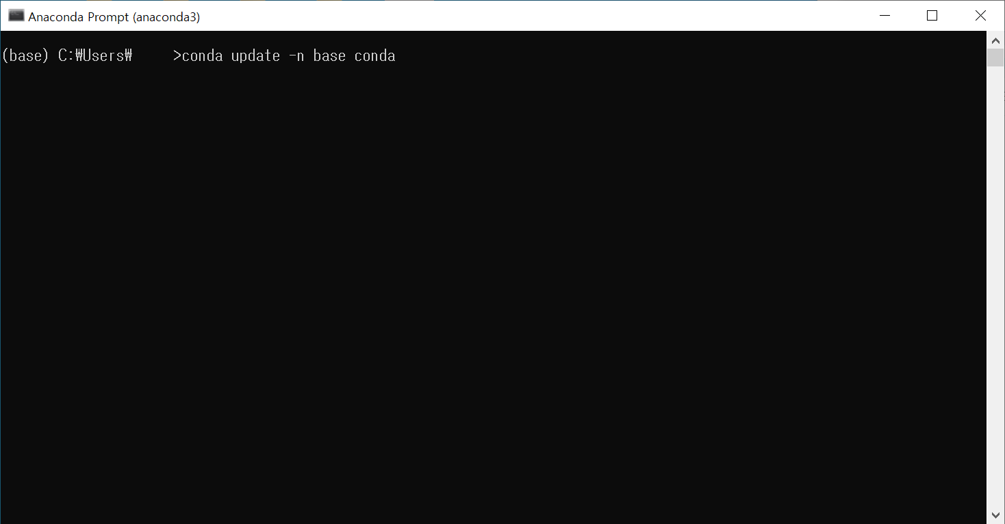 시작 메뉴에서 'Anaconda Prompt (anaconda3)'을 실행한 후, 아래의 명령어를 차례대로 입력하면 아나콘다, 파이썬, 파이썬 관련 패키지를 업데이트하고 아나콘다와 파이썬의 버전을 확인할 수 있다.