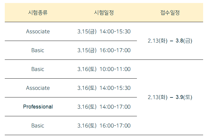 ㅣ3월16일(토) 시행시험은 3월 9일(토)까지 접수마감