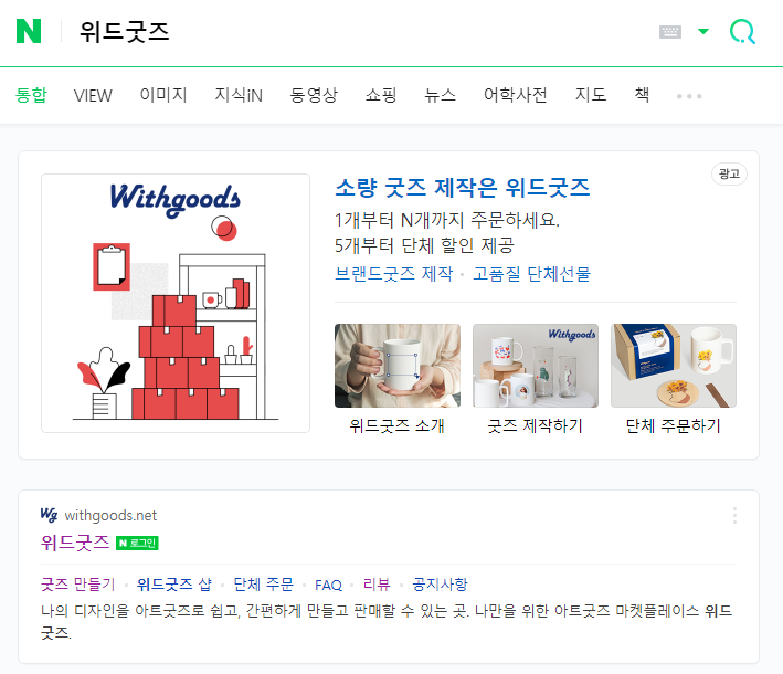 검색사이트에서 '위드굿즈'를 검색하거나 https://withgoods.net/을 입력하여 위드굿즈 홈페이지로 이동 후, 회원가입을 진행한다.