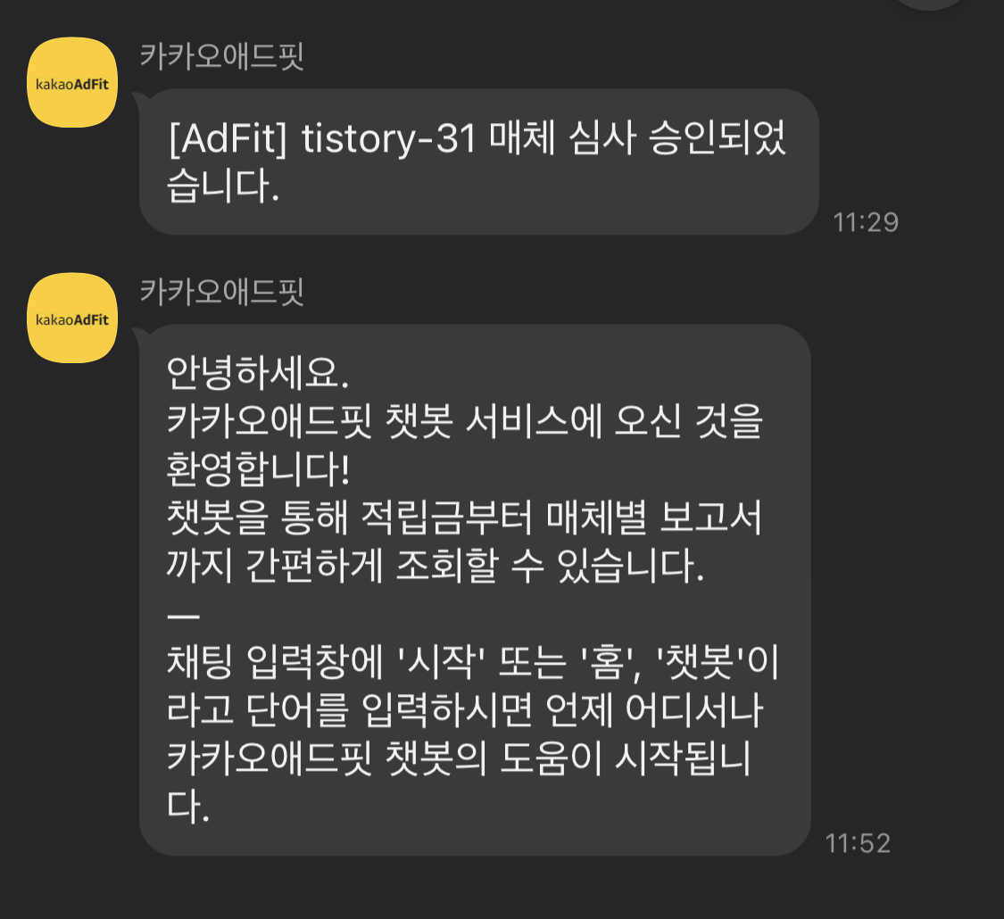 티스토리의 수익 페이지로 돌아오면 광고 플랫폼 항목에 '심사 중'이라고 표시되는 것을 확인할 수 있다.