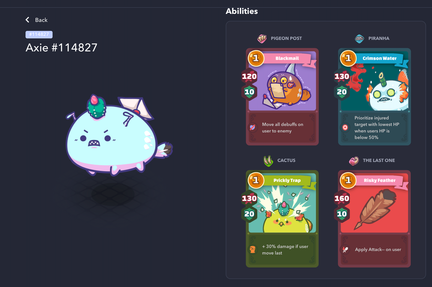 각 Axie는 전투에서 그들의 역할을 결정하는 다른 특성을 가지고 있습니다.