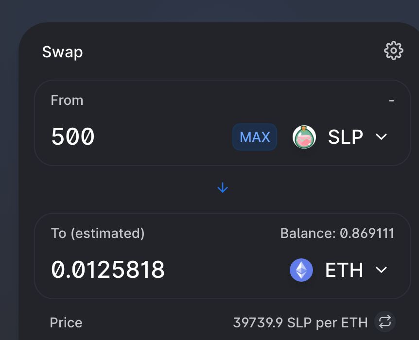 SLP는 PvE 어드벤처 모드와 PvP 아레나에서 게임을 플레이하여 얻을 수 있습니다. 적립하면 이 페이지 에서 지갑과 동기화할 수 있습니다. 첫 번째 SLP를 청구하려면 2주가 소요됩니다. 이 첫 번째 청구 후에는 2주에 한 번 청구할 수 있습니다.
