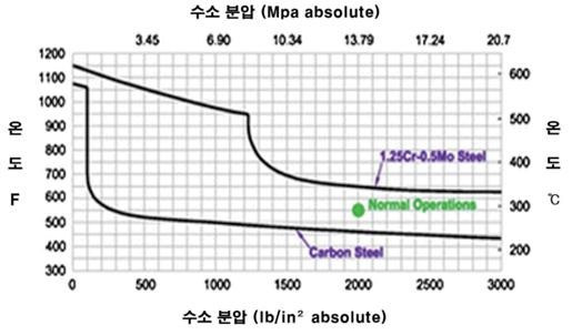 - 넬슨선도를 통해 사용 온도와 압력에 적합한 저합금강의 재질을 선정할 수 있다.