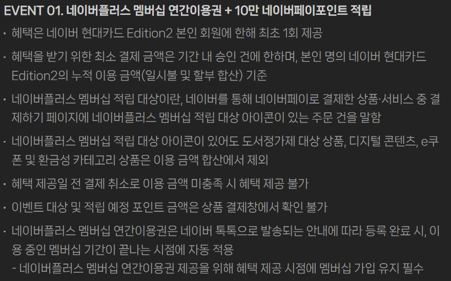 - 혜 택 : 네이버페이 포인트 10만 포인트 + 네이버 플러스 멤버쉽 연간 이용권