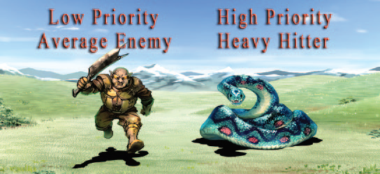 적의 조합은 매우 다른 만남을 만들 것입니다. 위는 나의 만남 중 하나입니다. 나는 적들이 나에게 가하는 위협의 양에 영향을 받는 플레이어로서 어떻게 접근할지에 라벨을 붙였습니다.