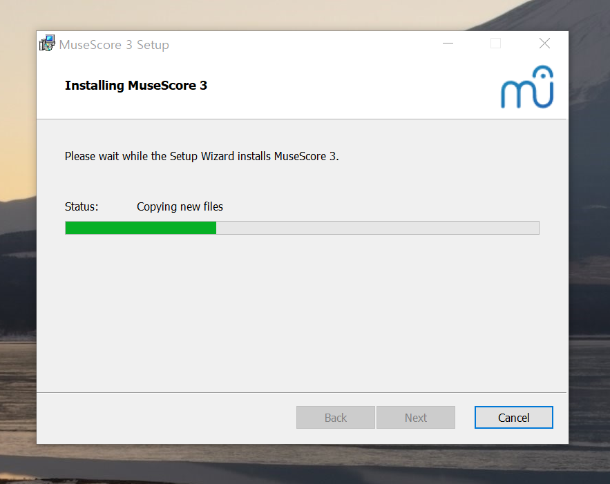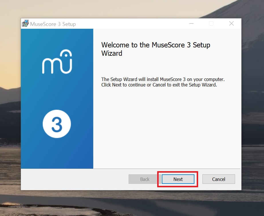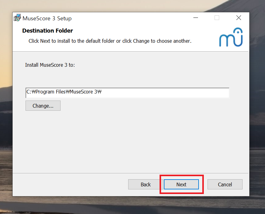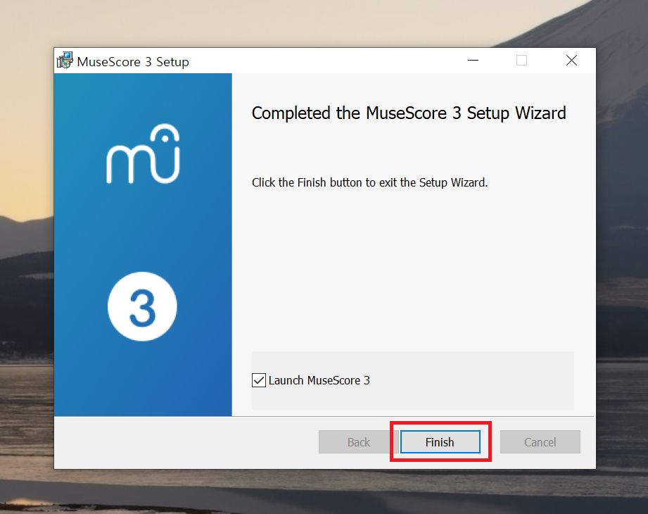 검색사이트에서 '뮤즈스코어'를 검색해서 '다운로드'를 클릭하여 '뮤즈스코어' 공식 홈페이지의 다운로드 페이지로 이동 후, 'Windows용 다운로드 (64비트)' 항목을 선택하면 설치 파일이 다운로드된다.