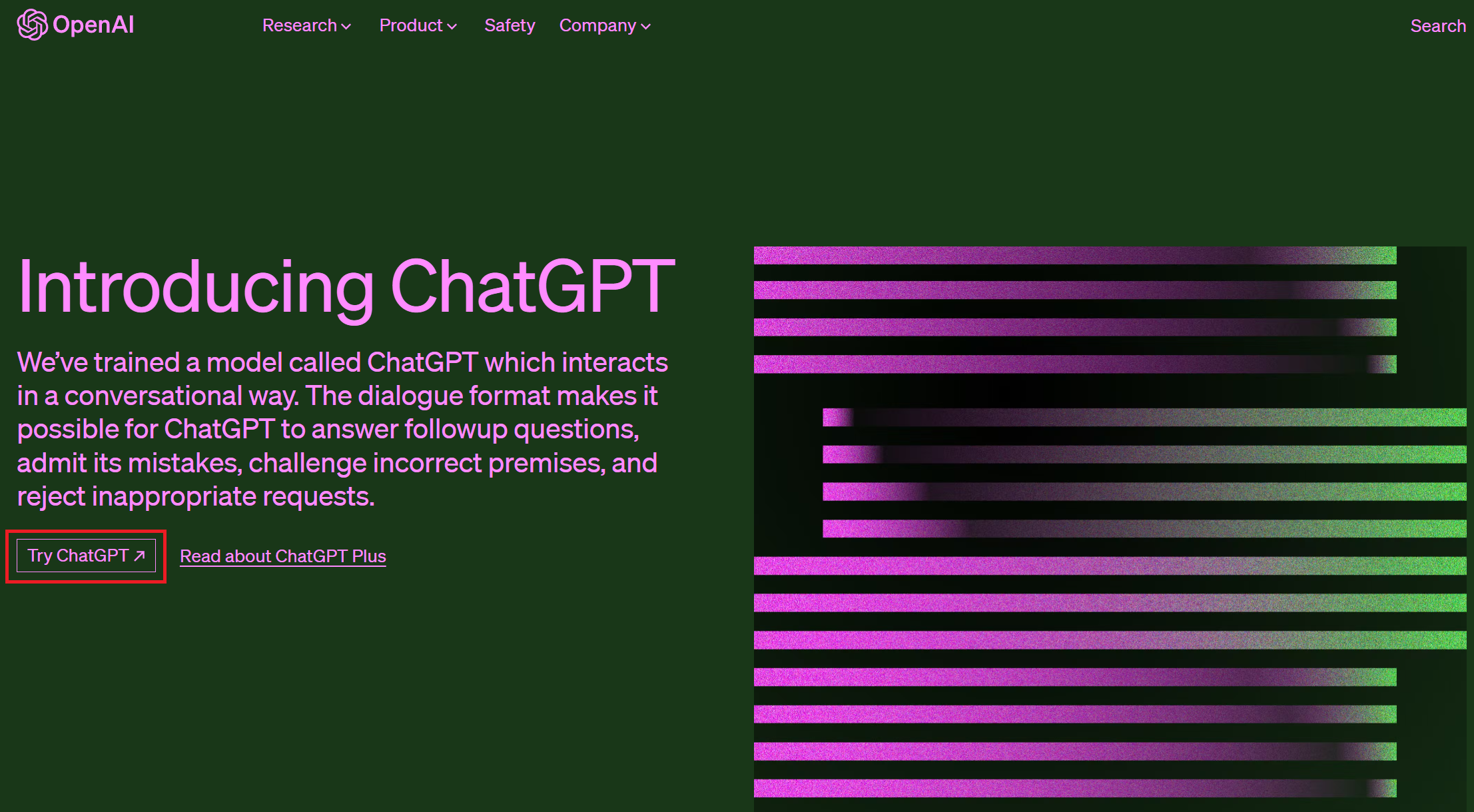 검색사이트에서 'chat gpt'를 검색해서 'Introducing ChatGPT - OpenAI'를 클릭하거나 https://openai.com/blog/chatgpt을 입력하여 ChatGPT 공식 홈페이지로 이동 후, 'Try ChatGPT'를 클릭한다.