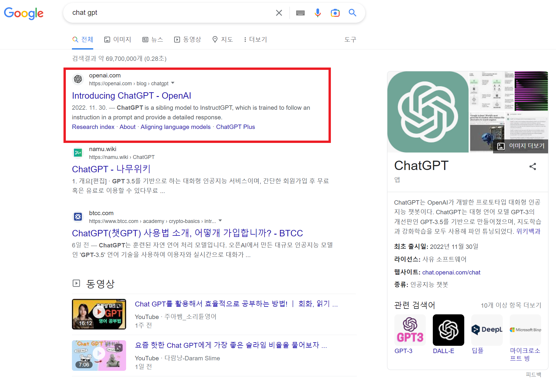 ChatGPT 계정생성을 완료하고 첫 번째 질문으로 한글에 대해서 물어보니 아래와 같이 답변이 출력되는 것을 확인할 수 있다.