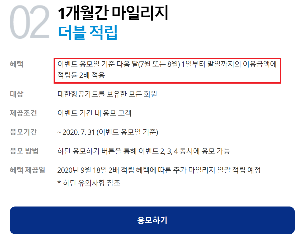 4. 대한항공 더블 적립 프로모션 적용하면,