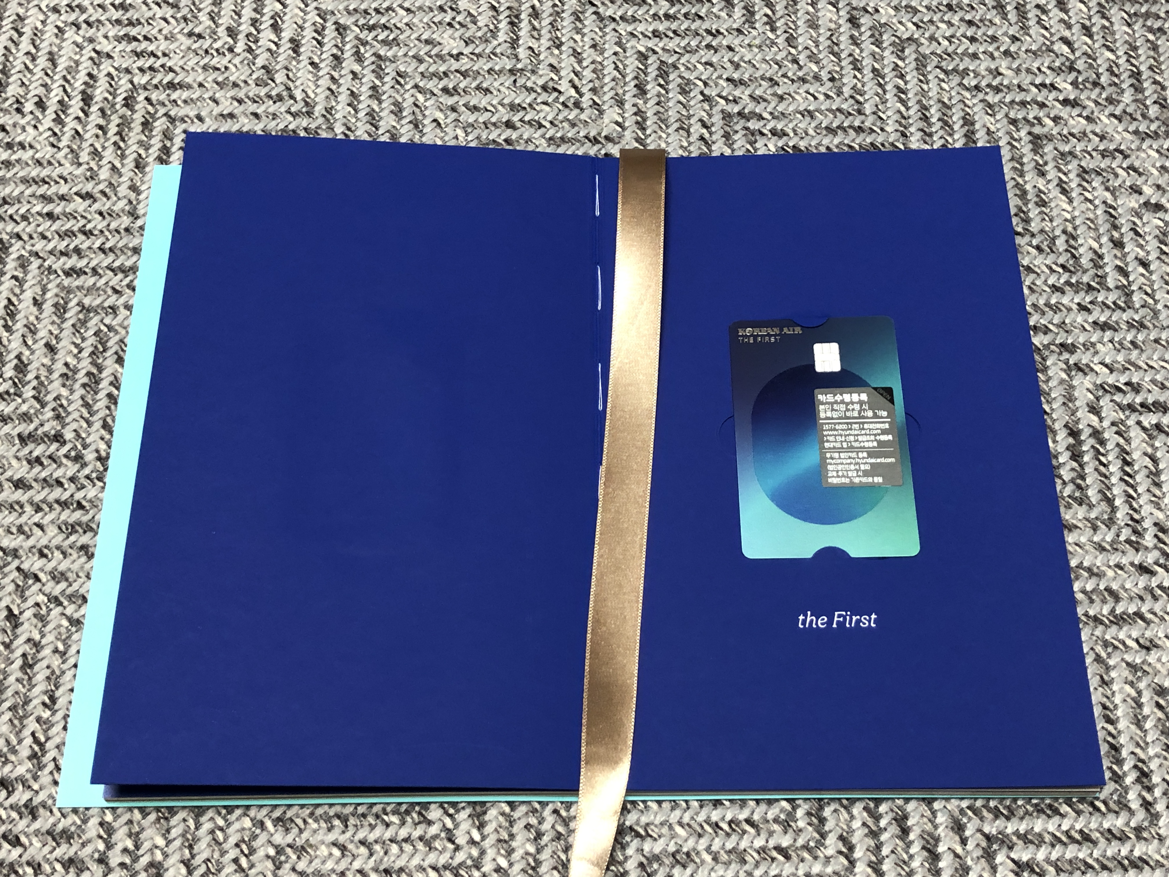 먼저 왼쪽의 흰색 패키지를 열어보면 약관, 가이드북, 바우처 등 각종 안내 책자와 스티커가 들어있는데, 스티커는 정말 이걸 어디에 써야 할지 난감하다. 다른 등급의 카드에 들어있는 스티커는 캐리어나 노트북 등에 데코로 붙이거나 스티커 자체로도 이쁜데, the first에 들어있는 스티커는 고급진 것도 아니고 캐주얼도 아니고 좀 그렇다.