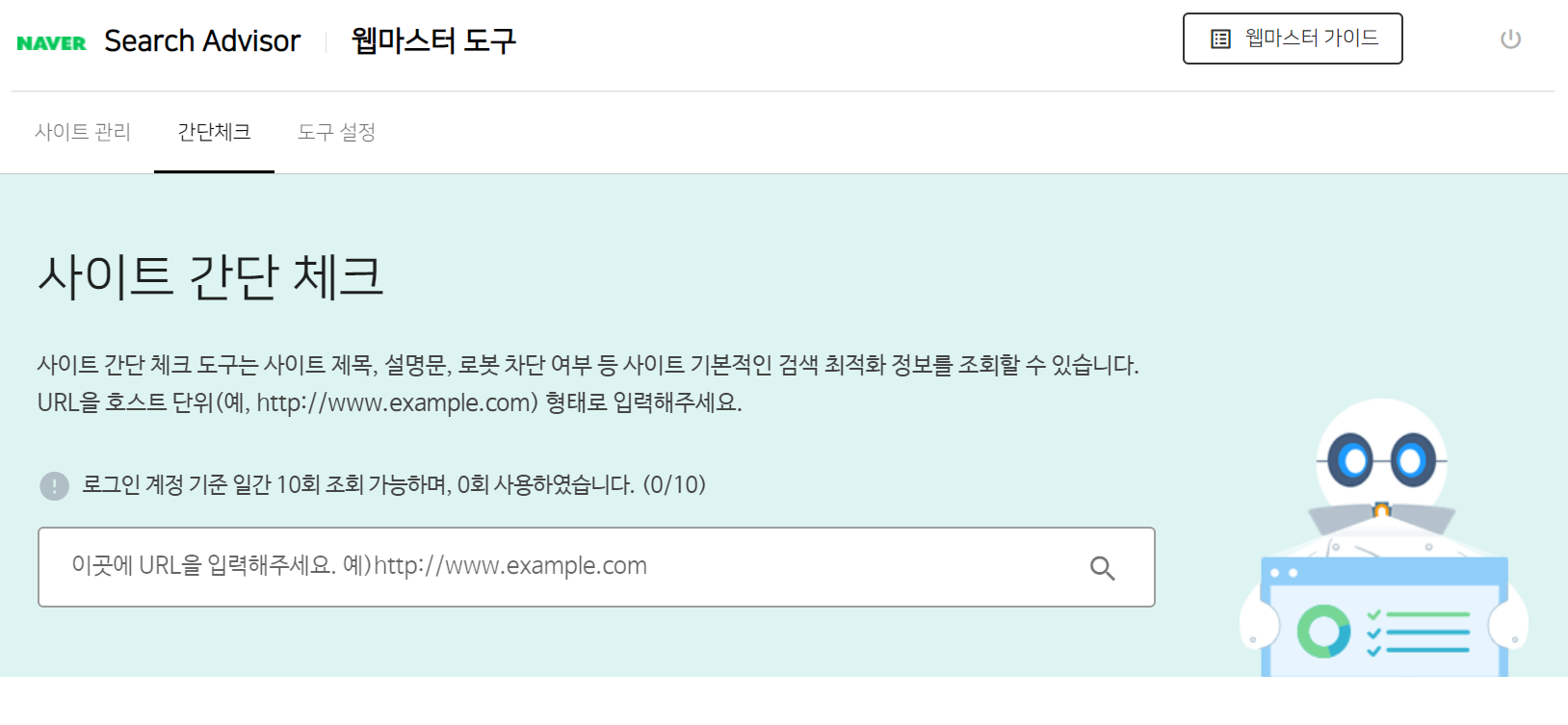 - 웹마스터 도구를 사용하지 않아도 네이버 검색 결과에 사이트 및 웹문서들이 반영될 수 있지만, 네이버 웹마스터 도구를 사용하면 사이트가 어떻게 검색에 반영되는지 확인할 수 있어 사이트 운영에 많은 도움이 될 수 있다고 한다. (네이버 서치어드바이저 - 고객센터)