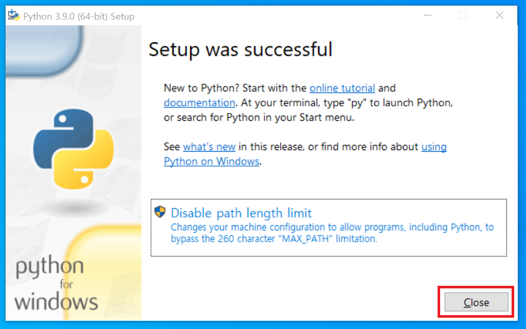 파이썬 3.9.0 (64-bit) 설치
