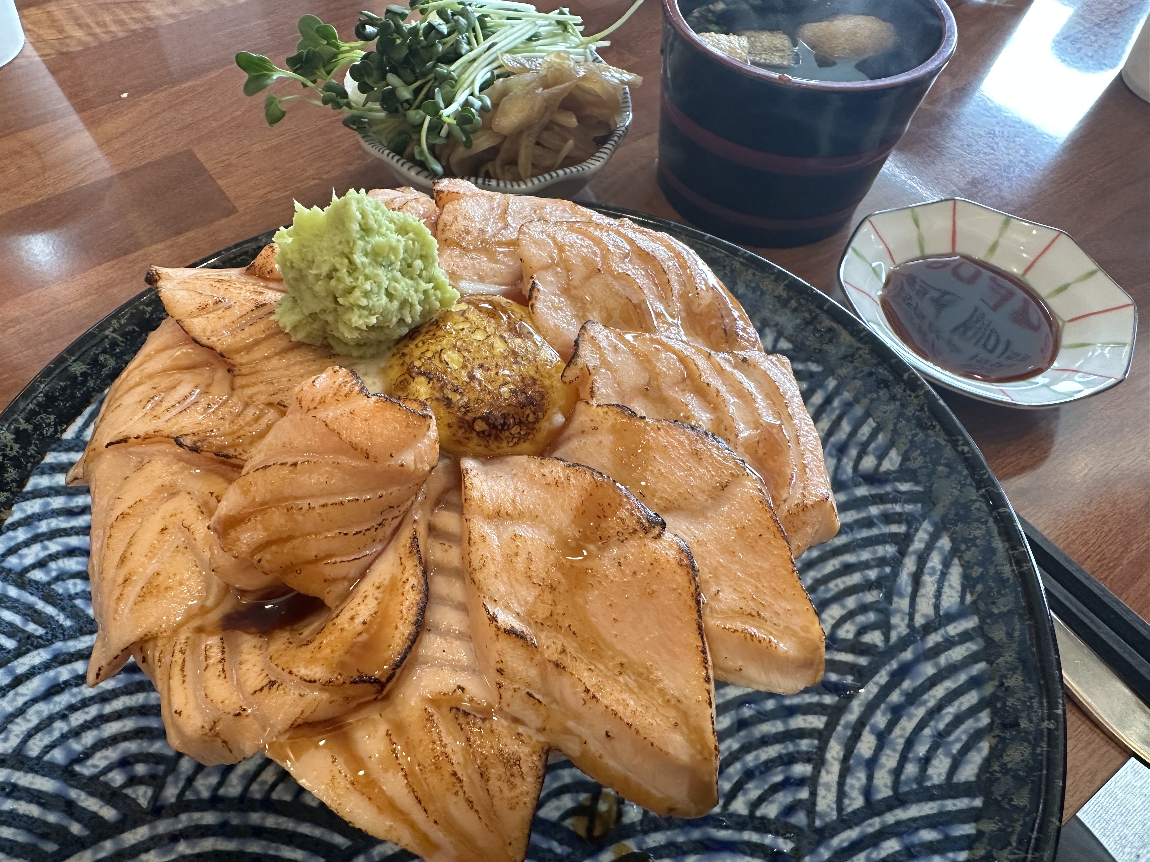 살짝 구운 연어의 기름진 부드러움과 부드러움의 상징인 노른자에 와사비의 조합이 정말 맛있다. '사케 뱃살동' 보다 부드러운 식감이고 2~3회차 부터는 어느정도 밥양을 잘 조절하면서 마지막에 밥만 남지 않도록 먹을 수 있게된다.