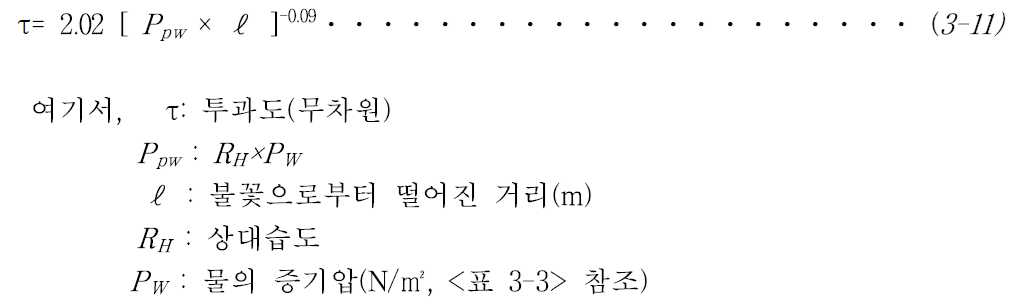 - 7)과 별도 표(복사열의 영향 판단표)를 통해 그 지점에서의 피해를 예측함