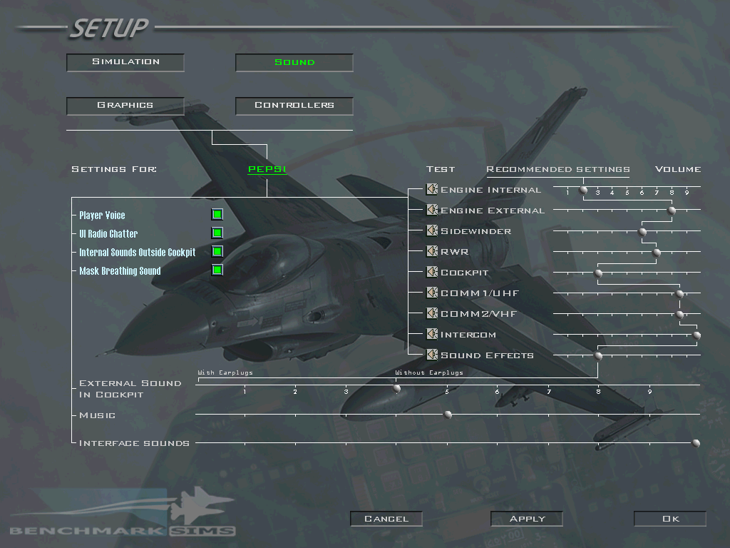- Internal Sounds Outside Cockpit : 외부조망에서 내부소리