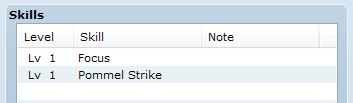 모두 채워봅시다. 적을 위해 더 추가할 수도 있지만 여기에는 PC가 포함됩니다. 내가 사용한 목록이 왼쪽에 표시됩니다. 캐릭터마다 무기 스킬이 있고 매들린과 윈터는 마법 스킬이 있습니다. 이제 완료되었으므로 스킬 탭으로 이동할 수 있습니다. 하나의 기술을 만드는 과정을 안내하고 나중에 피해 공식을 다룰 것입니다.