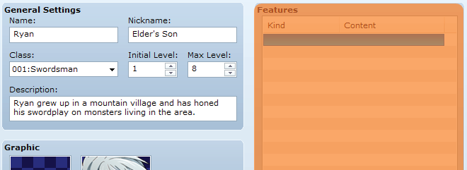 예제 게임에서 캐릭터는 모두 고유한 클래스를 가지고 있고 아무도 클래스를 변경하지 않기 때문에 Actor 및 Class 탭 기능은 효과적으로 교환할 수 있습니다.
