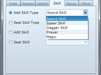 스킬에 대한 효과와 마찬가지로 빈 줄을 두 번 클릭합니다. 기능 상자가 나타납니다. Equip 탭으로 이동하여 Equip Weapon을 선택하고 Swords를 선택하십시오. 그런 다음 OK을 누르십시오. 간단하게 기능을 추가했습니다!