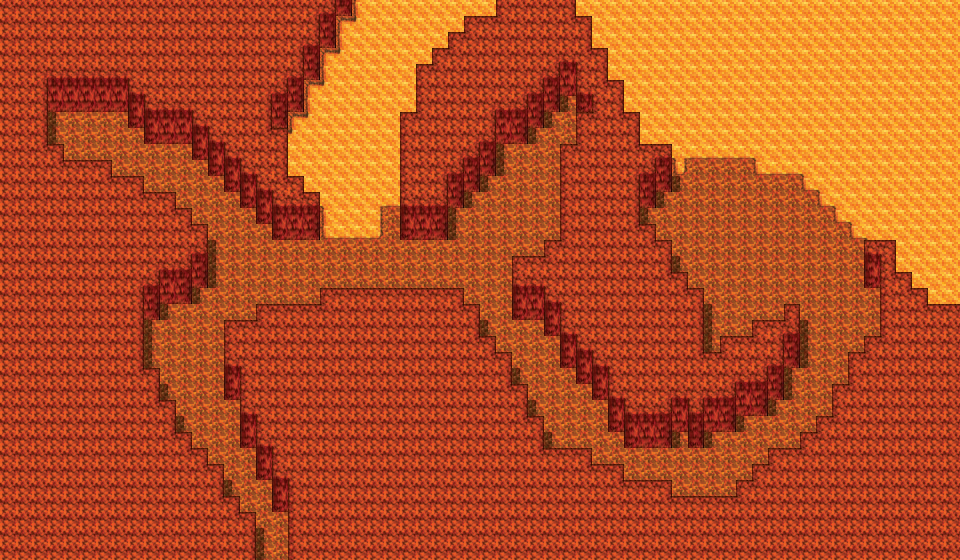 이 지도는 전반적으로 훨씬 더 유기적으로 성장했으며 훨씬 덜 구조화되었습니다. 이상하게도 이것은 자연적 기원을 반영합니다. 내가 한 첫 번째 일은 내 지도에 부과된 장벽을 변경하기 위해 약간의 용암을 가져오는 것입니다. 화산 안에 있는 것이 자연스러운 선택이라고 느꼈습니다.