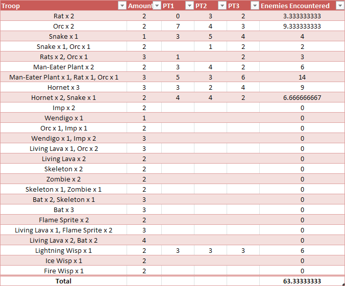 위의 표는 첫 번째 마일스톤을 3번 테스트하면서 생성한 표입니다. 그런 다음 내가 만난 적의 수를 이 세 가지 플레이 간의 평균으로 계산했습니다. 이것은 지루해 보일 수 있으며 실제로 그렇습니다. 모든 훌륭한 게임에는 수많은 플레이 테스트가 필요합니다.